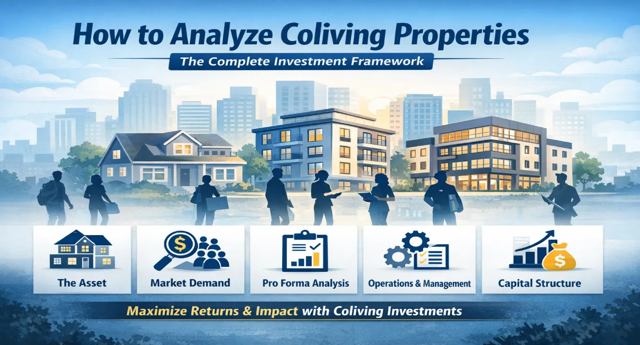 After evaluating more than 500 coliving deals, I can tell you one thing with certainty: most investors are analyzing these assets the wrong way. They apply the same multifamily or single-family rental framework to a product that operates fundamentally differently, and then they wonder why their pro forma does not match reality. This coliving investment analysis framework covers the five pillars every investor needs to evaluate before buying — whether you are learning how to analyze a coliving deal for the first time or pressure-testing your hundredth.